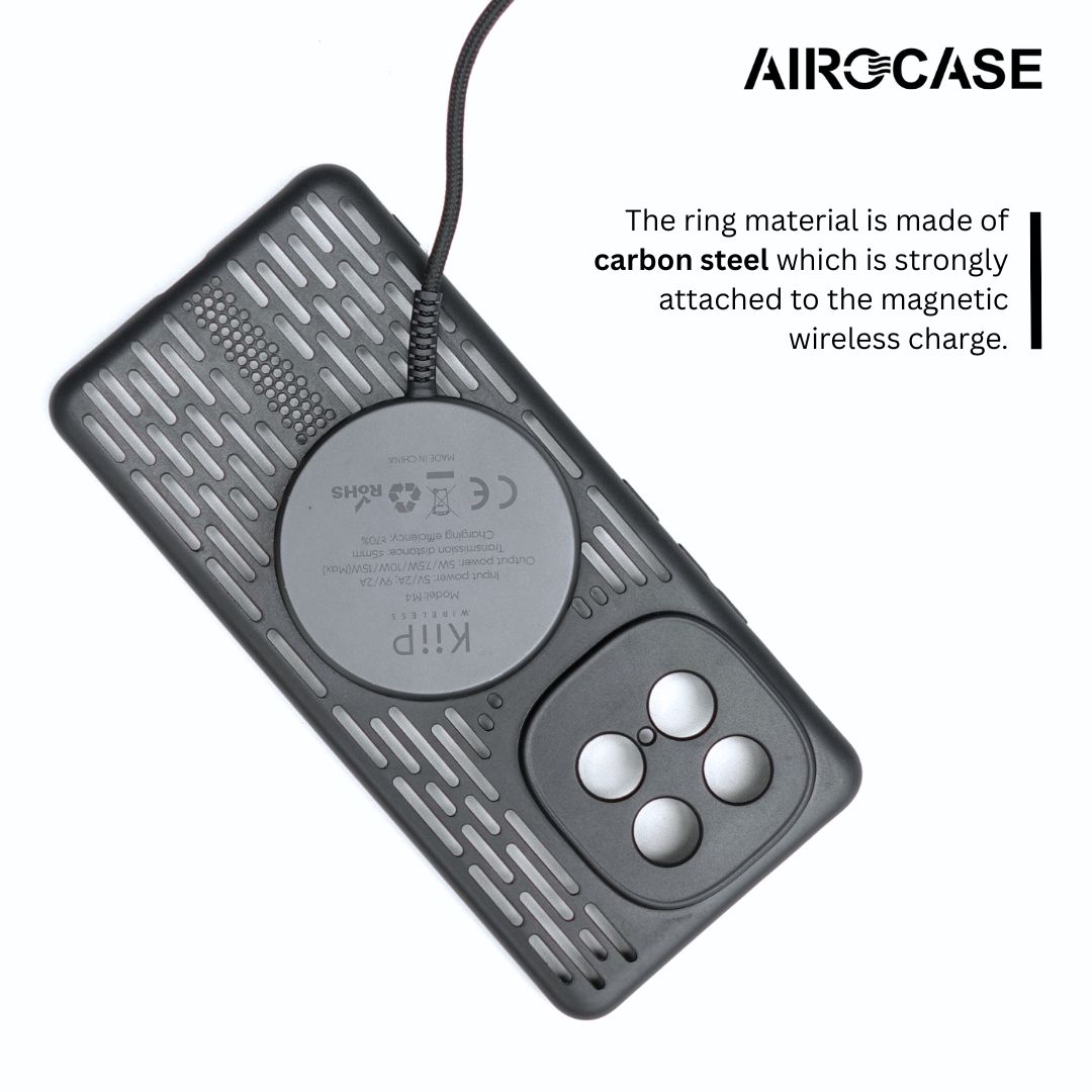 Airocase dengan teknologi airflow atau lubang ventiasi membantu mengoptimalkan sirkulasi panas smartphone sehingga tidak mudah panas. Diseri IRONIC Kami hadir dengan tambahan fitur baru support pengisian daya tanpa kabel atau wireless charging dan fan cooler